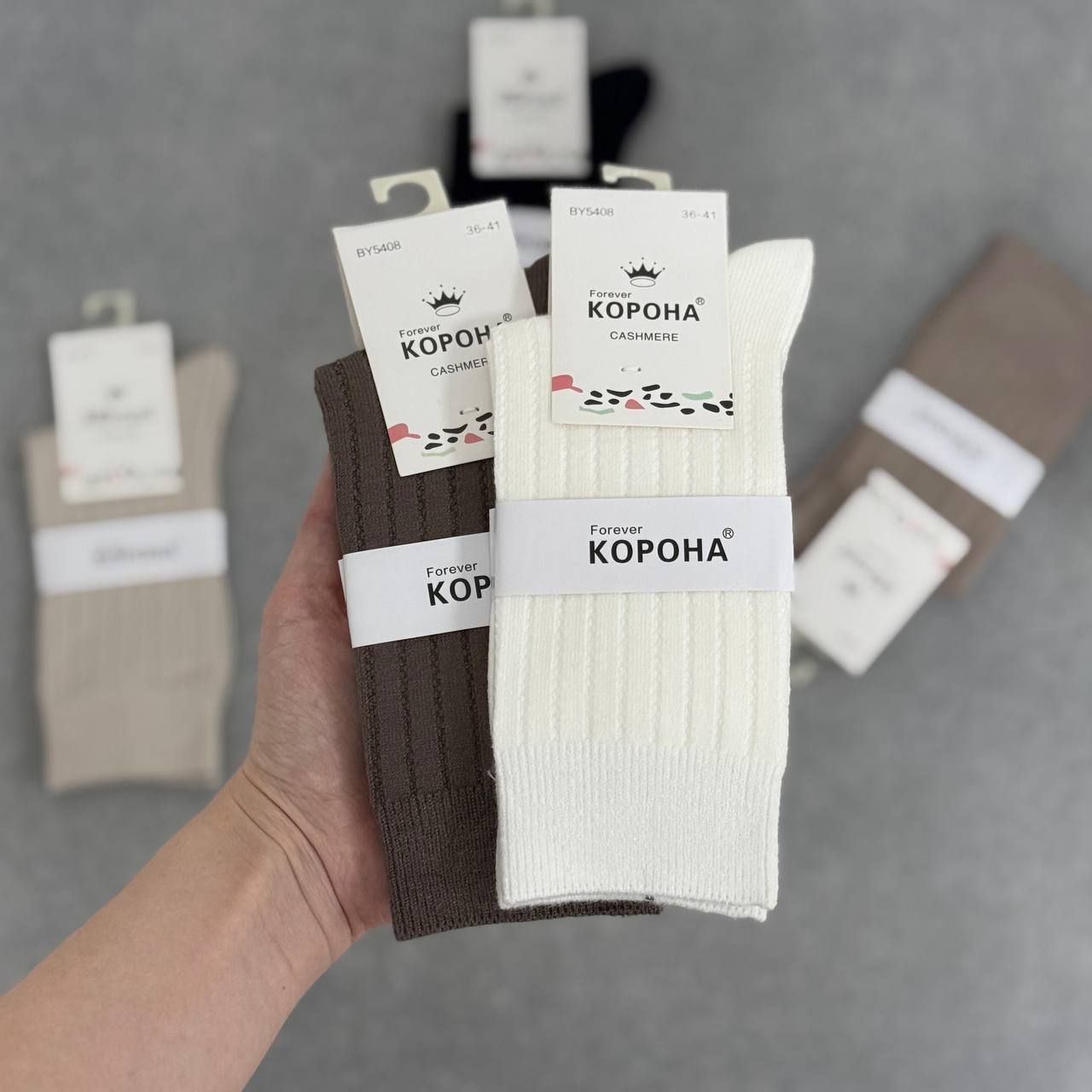 Кашемировые женские носки высокие премиум Корона, пастельные, 36-41 р, 5 пар